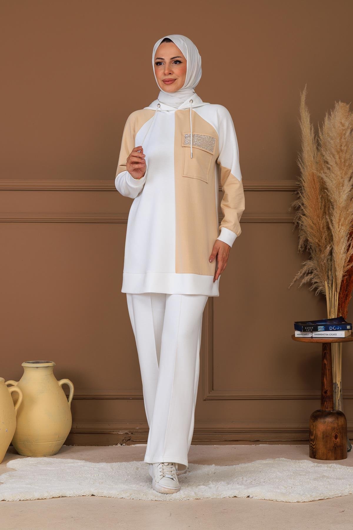 TAŞ APLİKELİ KAPÜŞONLU SWEATSHIRT