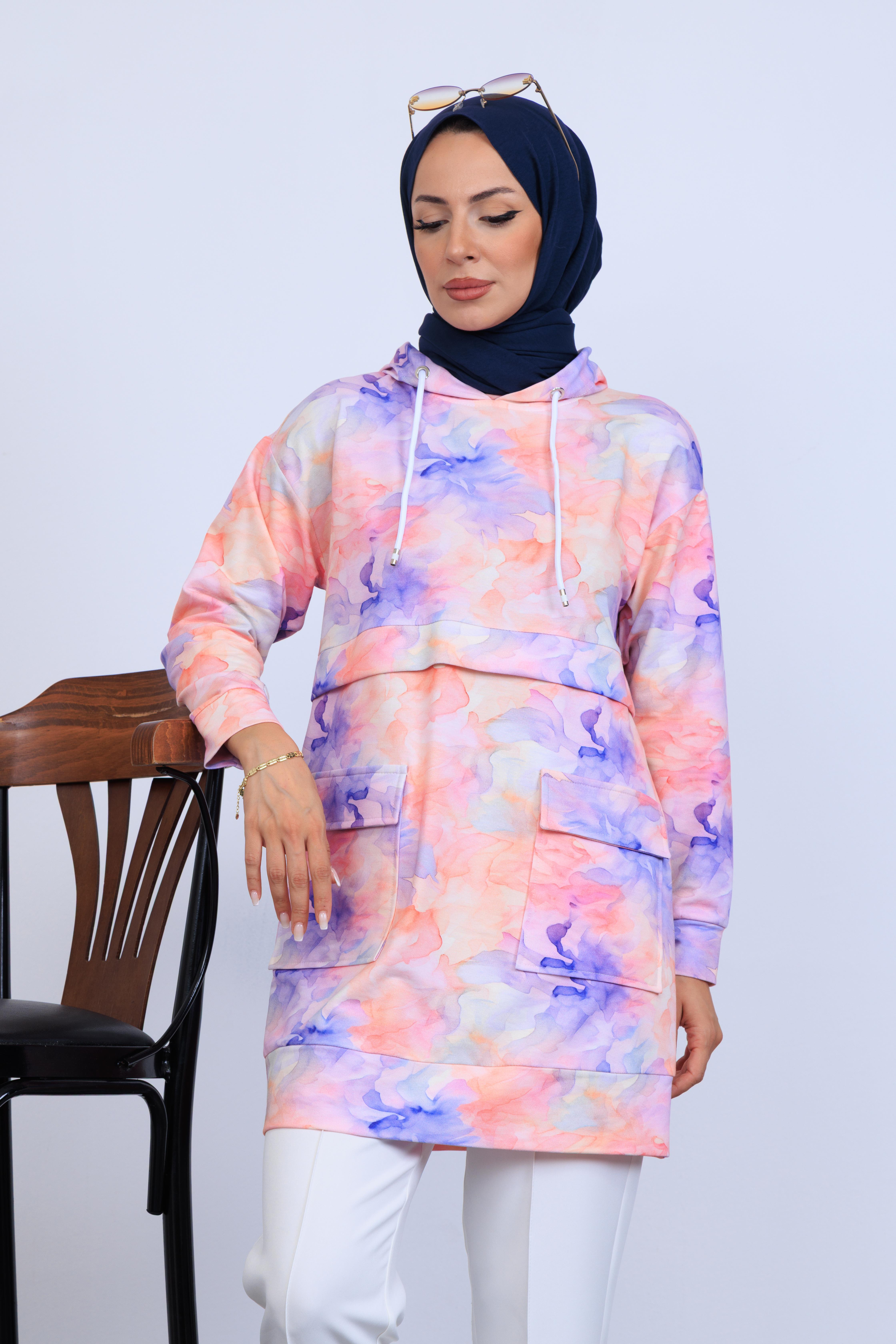 DESENLİ CEP DETAYLI SWEATSHIRT