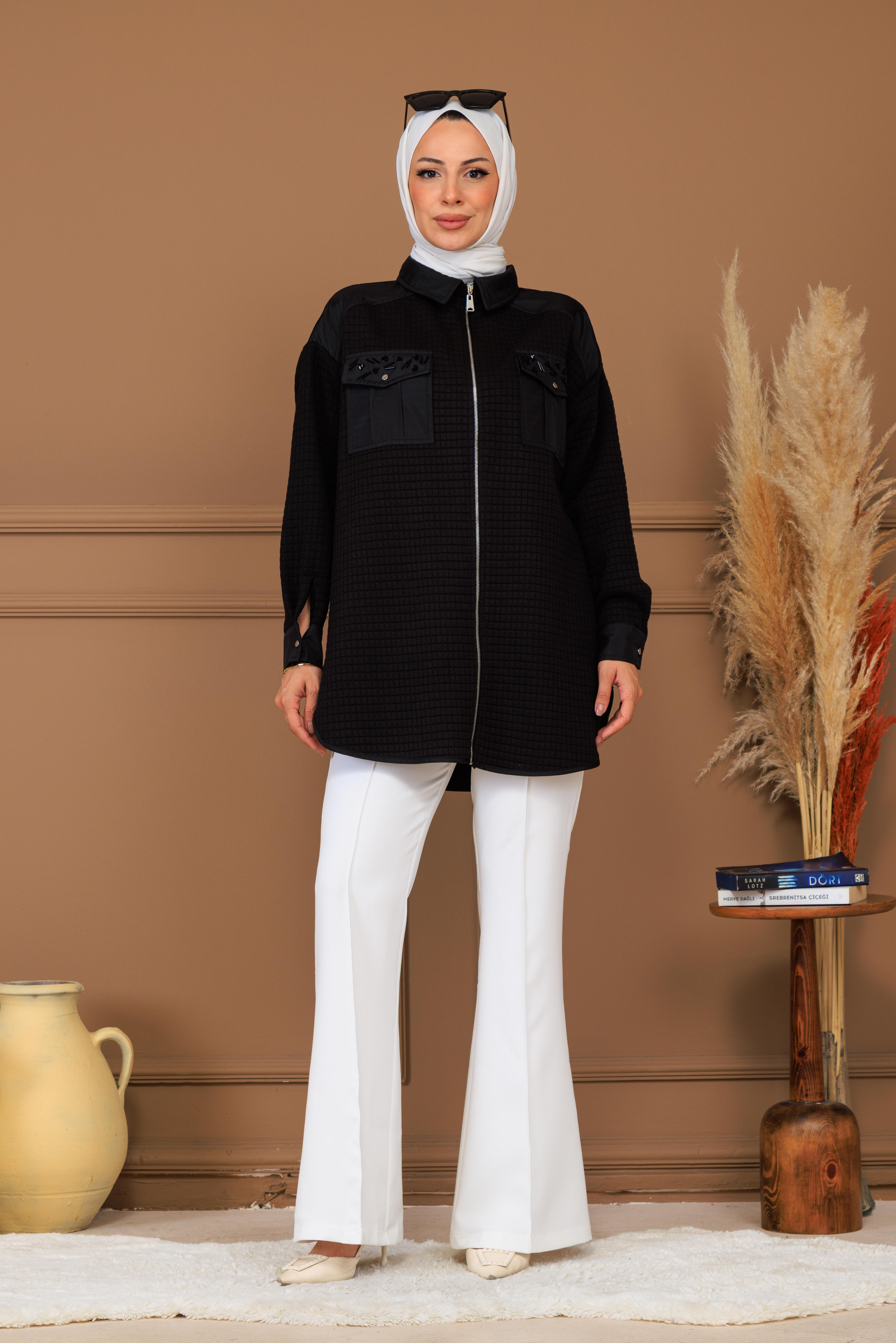 TAŞ DETAYLI FERMUARLI KAPİTONE GÖMLEK (MB11.298)