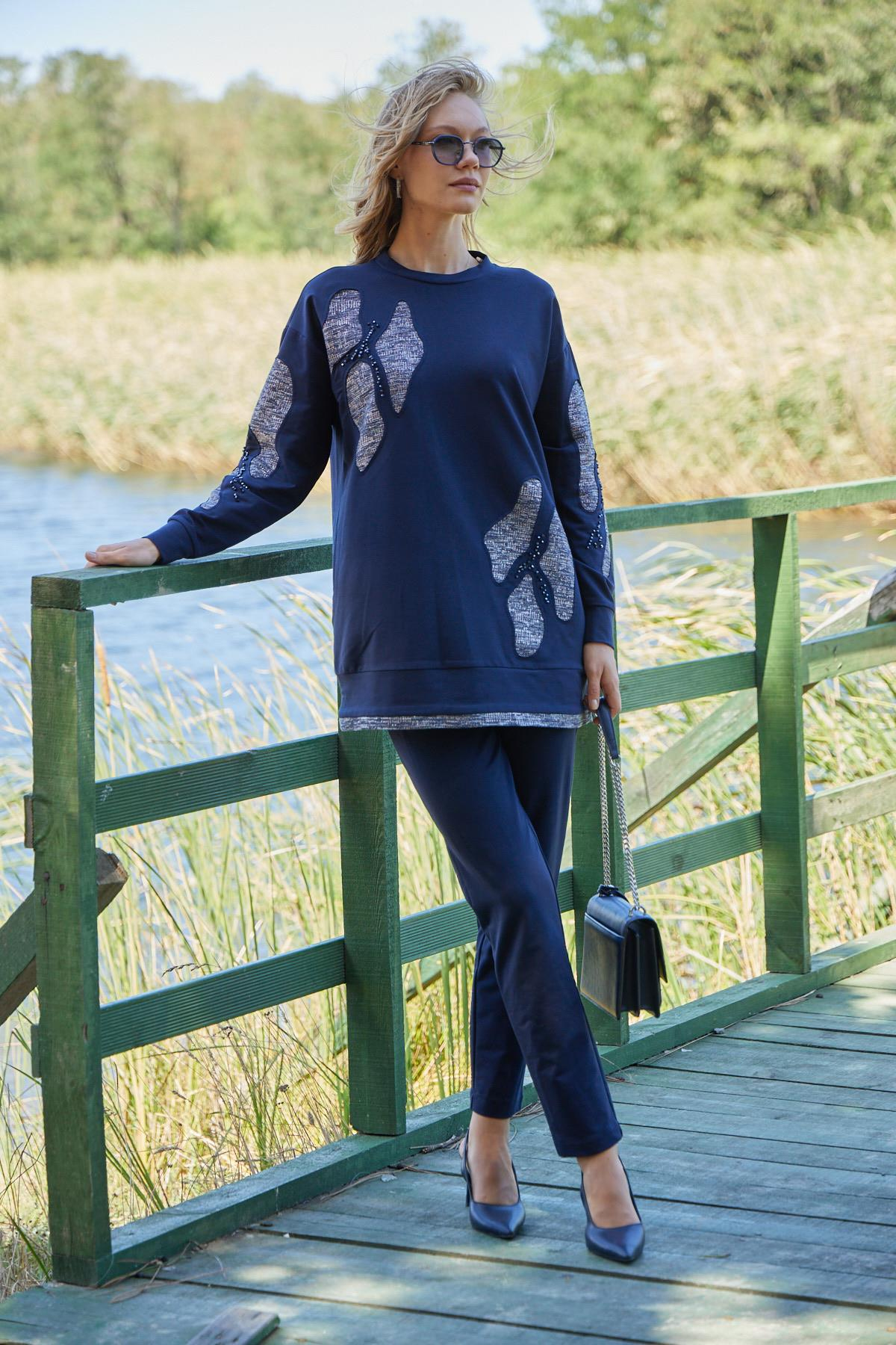 TRİKO DETAYLI İŞLEMELİ TUNİK